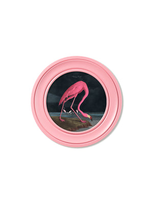 c.1838 Audubon's Flamingo - Dark - Round Frame Pink