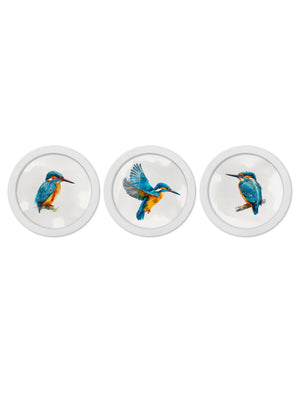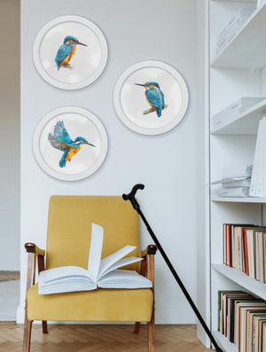 Watercolour Kingfishers - 30cm White Round Box Frame