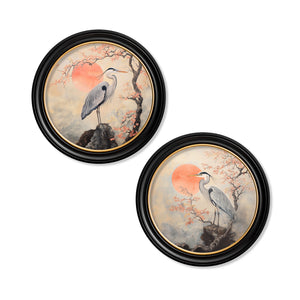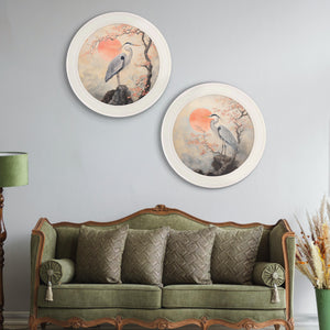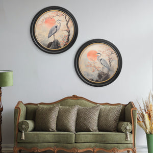 Japanese Twin Herons - Oxford Strong White Round Frame