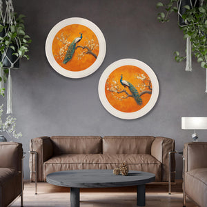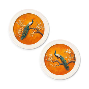 Peacocks In Saffron Garden - Oxford Strong White Round Frame