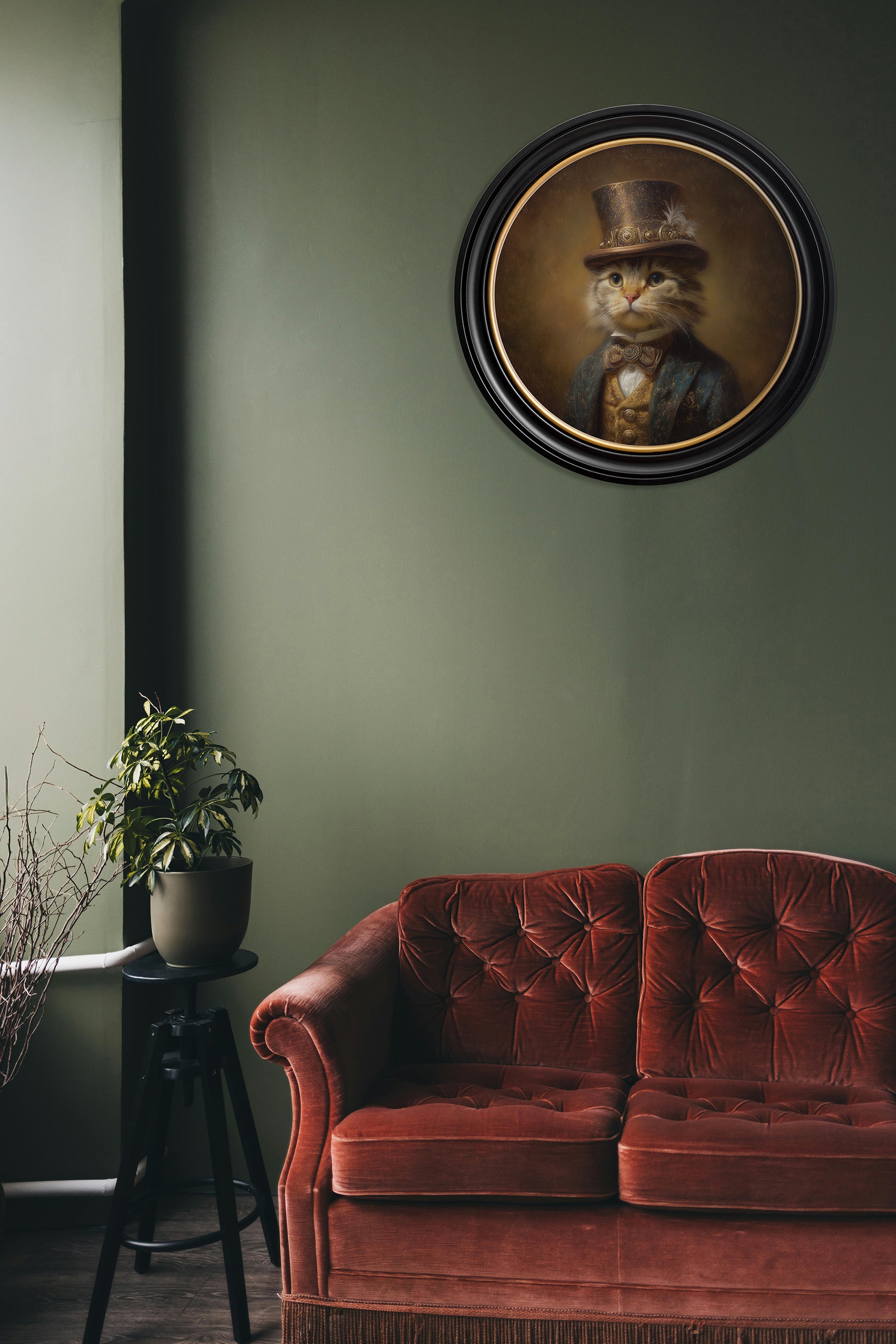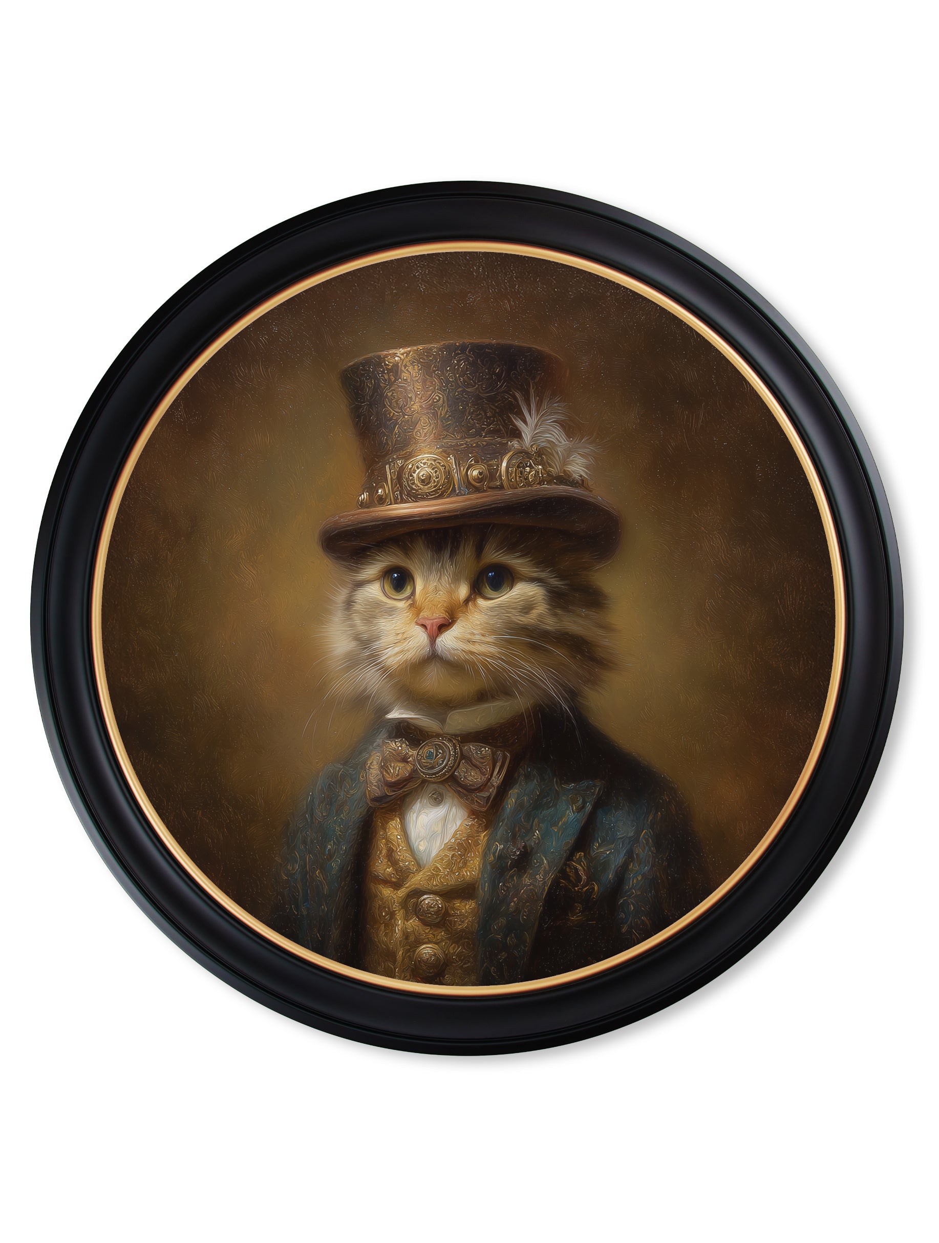 Lord Whiskerby - Gentleman Tabby Cat Oxford round frame